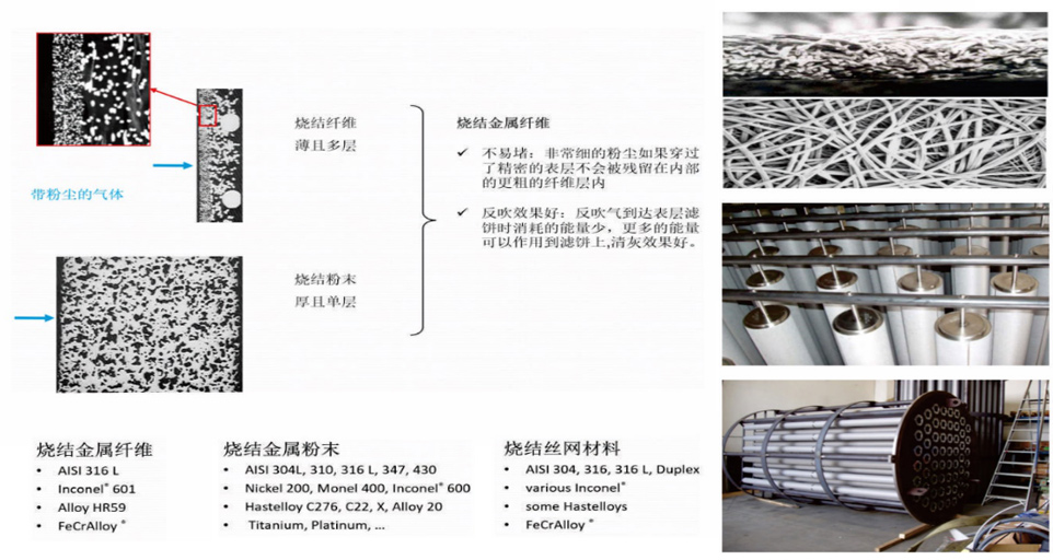 Filter element: made of metal sintered fiber, sintered powder and sintered wire mesh.